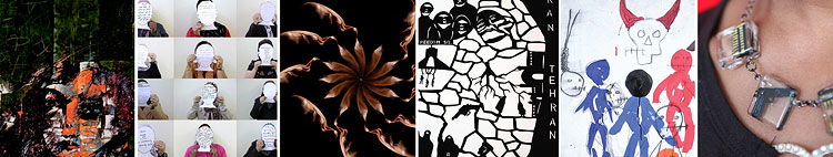 Exhibiting artists include award-winning Amang Mardokhy from Kurdish Iraq, whose paintings touch on repression, history and resistance. Photographer Iseult Timmermans worked with Refugee women at Glasgow’s Red Road Community Studio exploring "how military violence affects women’s lives". Iranian photographer Mazaher creates detailed montages combining human forms with Persian-influenced designs. The International Women’s Group from North Glasgow use photographic mixed media in response to issues of violence against women. Bold paintings and prints by Tracey Zengeni from Zimbabwe reflect on influences between her homeland and the UK. Painter and mixed media artist Flora Alexander presents intricate paper-cuts, subverting popular notions of her native Iran.