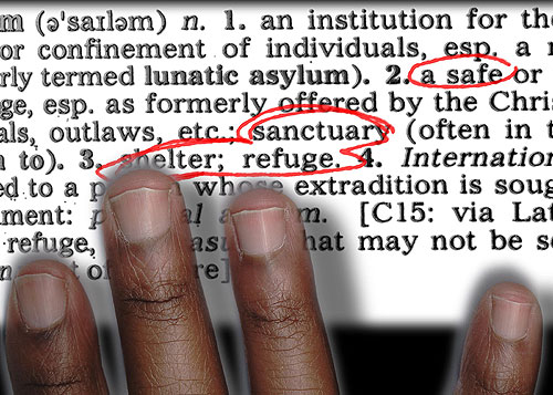 a 'self-interacting' digital art work by Keith Piper presented as a single-screen projection. The work charts the journey of an undefined yet conspicuous migrant through Europe and takes the viewer through the migrant’s thought processes while trying to stand proud in dealing with degradation, negation and displacement. Coming from a background of forced or coerced displacement one of the recurrent needs for the migrant is to find and regain a sense of community. One of the work’s central observations is how the migrant’s experiences in different European cities are almost interchangeable, and yet subtle differences also exist. The images and text work to interact with each other to create the interchangeability yet allow differences to suggest themselves based on the changing text-visual configuration. The date and time also set themselves to the actual date and time for the viewer (check your watch now) to add to the sense of such experiences occurring at this very minute, every minute. According to Piper, "There is clearly a glaring gulf between the current political establishments rhetorical celebration of 'multiculturalism' and its blatant pandering to the base xenophobia which distorts the reception of those currently 'seeking Asylum'. It is the contradiction between these two bodies of rhetoric, which 'Stranger' will explore.”